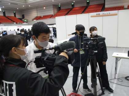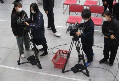 2年生:職場体験セミナー 〜カメラ・編集〜 公開日 2022/12/15 更新日 2022/12/14 学校 職場体験セミナー:カメラ・編集ブースの様子です。実際にカメラを操作して、自身が撮影した映像の出来具合をチェックすることができました。