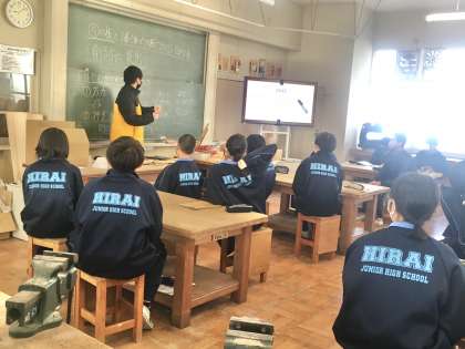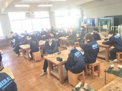 1年生3組の授業(技術)の様子 公開日 2022/12/16 更新日 2022/12/16 学校 16日(金)、1年生3組の1時間目は、技術の授業でした。切断した木材にきれいにやすり掛けを施すポイントについて学習していました。