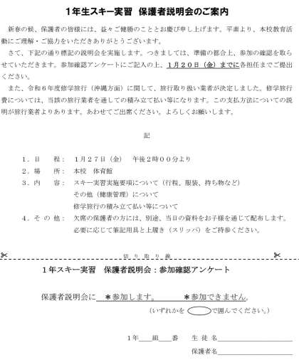 1月27日(金)保護者説明会〜3年ぶりのスキー実習に向けて〜