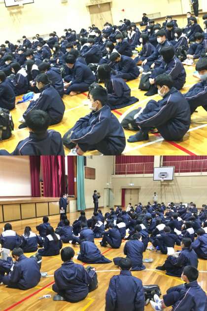 3年生:私学入試まであと1日!まだ1日 公開日 2023/02/09 更新日 2023/02/09 学校 9日(木)、明日の大阪府私立高校入試をひかえた3年生は、4時間目に入試に向けた事前指導を行いました。全体説明後は、いくつかの受験校ごとに分かれて入試要項を確認しました。 生徒は、やや緊張気味の表情を見せながらも、「先生!明日頑張ってくるで。」と担任の先生に力強く言葉を発し下校していきました。