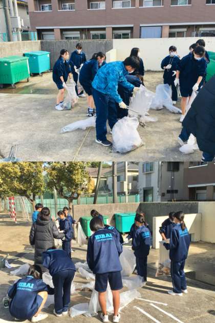 今回の活動には、およそ400名を超すボランティアの地域の方が参加され、校区の清掃活動をしてくれました。参加した中学生は収集されたゴミの分別作業をしてくれました。参加者のみなさま、どうもありがとうございました。