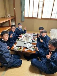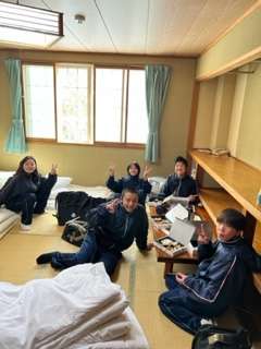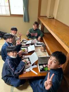 部屋で昼食の時間です。昼からの活動のためしっかり食べましょう!