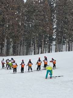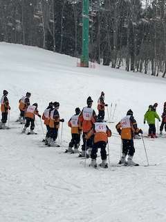 短い距離を滑っています。頑張っています。