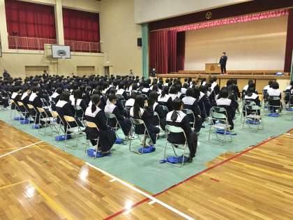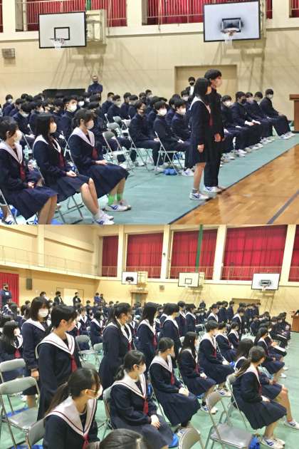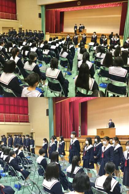 授与後、学級生徒は全員、回れ右をして保護者の方を向き、一礼をする流れです。