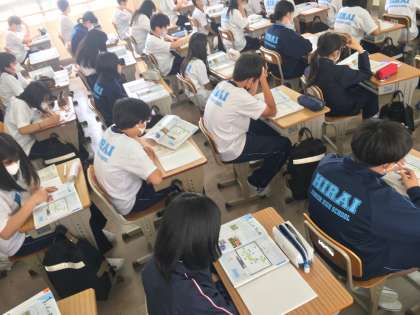 真新しい教科書を開きながら学習に取り組む新入生の姿が見られました。