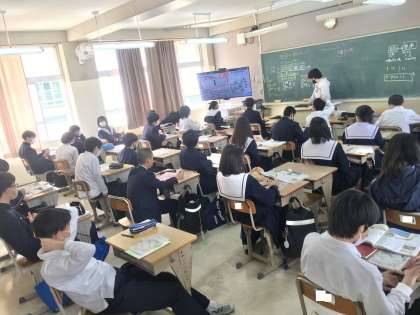 14日(金)、2年生2組の3時間目は、社会の授業でした。