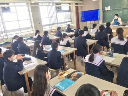 14日(金)、1年生5組の3時間目は、担任の先生による社会の授業でした。