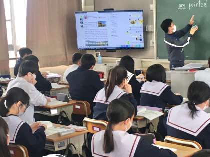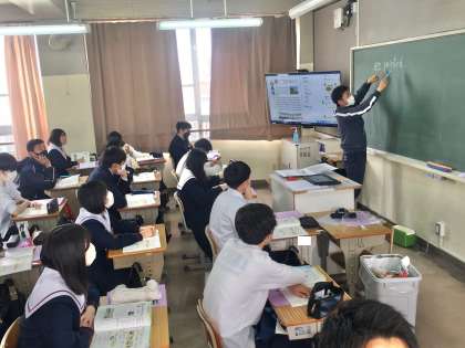3年生:英語の授業〜「受け身」の学習〜 公開日 2023/04/14 更新日 2023/04/14 学校 3年生英語の授業は、2年次で学んだ「受け身」の表現の復習から学習が始まっています。 ※写真は、7組の授業の様子です。