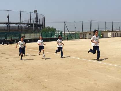 2年生の男子生徒は、保健体育の授業で、50m走の練習をしています。