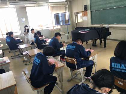 20日(木)、3年生6組の3時間目は、週に1回の音楽の授業でした。
