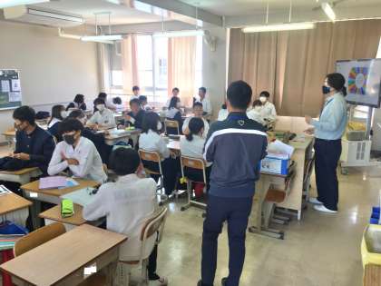 3年4組の授業(英語)の様子 公開日 2023/05/10 更新日 2023/05/10 学校 10日(水)、3年4組の1時間目は、英語の授業でした。 英語の授業には、週に1回程度、NSの先生が来てくれています。