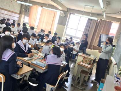 10日(水)、1年1組の3時間目は、英語Bの授業でした。 NSの先生が授業に来てくれていました。
