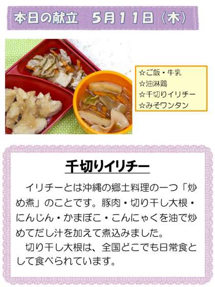 5月11日(木)の献立です。