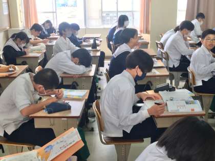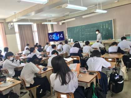 15日(月)、2年4組の1時間目は、担任の先生による国語の授業でした。