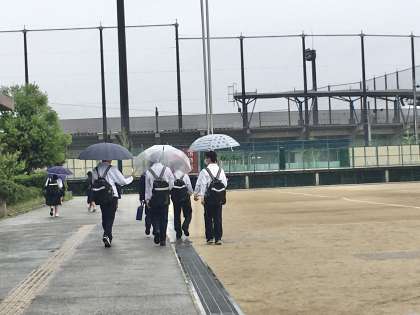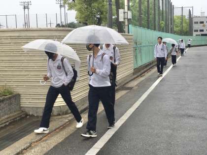 19日(金)中間テスト最終日は、あいにくの雨となりました。