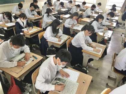 3年生:中間テスト〜美術〜 公開日 2023/05/19 更新日 2023/05/19 学校 19日(金)、3年生の3時間目は、美術の試験でした。 遠近法やルネサンス期の絵画の特徴に関する問題が出題されていました。 ※写真は、5・6・7組の様子です。