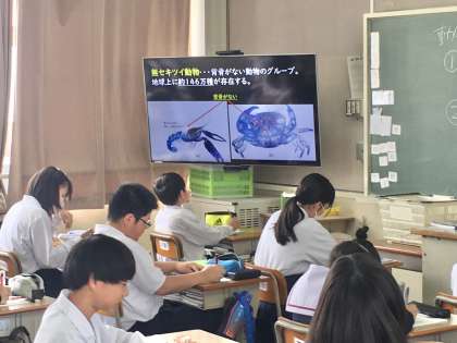 1年生1組の授業(理科)の様子 公開日 2023/05/25 更新日 2023/05/25 学校 25日(木)、1年生1組の1時間目は、理科の授業でした。 生徒は、セキツイ動物と無セキツイ動物の特徴について学習していました。