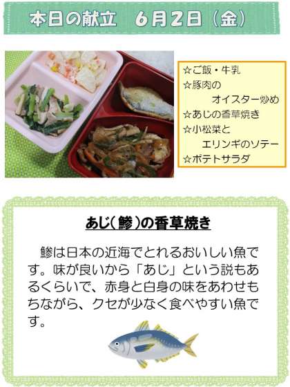 6月2日(金)中学校給食の献立です。