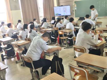 3年生は、国語の授業で、教材「作られて物語を越えて」を通して、論説文の読み方を学んでいます。