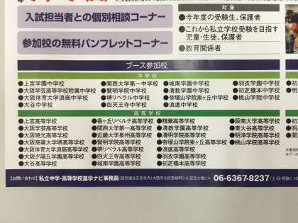主な参加予定校は、本校から毎年進学実績のある大阪学芸、大阪暁光、大阪商業大学堺、香ヶ丘リベルテ、賢明学院、精華、清教学園、帝塚山学院泉ヶ丘、浪速、羽衣学園、東大谷、桃山学院などの学校です。