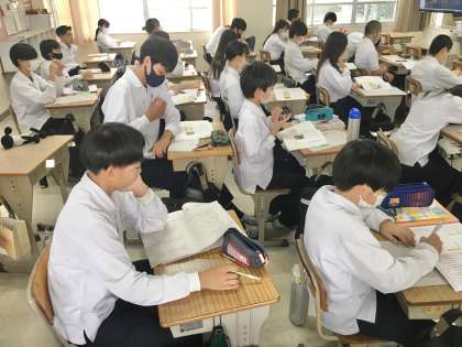 6日(火)、2年生3組の1時間目は、国語の授業でした。 授業は、教育実習の先生が担当していました。