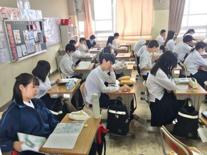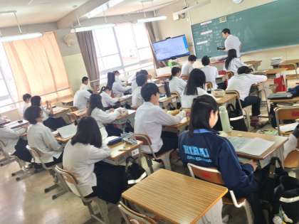 3年生:数学の授業〜平方根同士の足し算・引き算〜 公開日 2023/06/06 更新日 2023/06/06 学校 3年生は、数学の授業で、ルート記号のついた数同士の足し算や引き算について学習しています。 ※写真は、5組の授業の様子です。