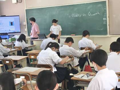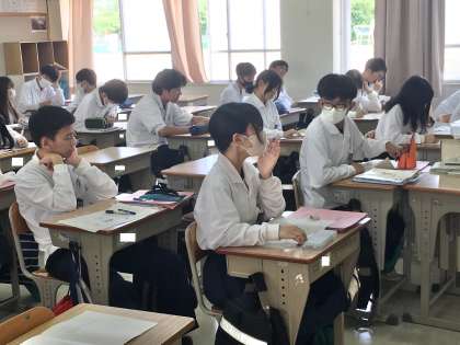 2年生は、英語の授業で、飲食店でよく尋ねられる言い方や飲食したい物を相手に伝える表現について学習しています。