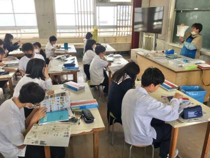 7日(水)、1年生5組の2時間目は、美術の授業でした。