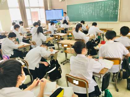 8日(木)、2年生5組の1時間目は、国語の授業でした。 新単元「言葉の力」の学習が始まっていました。