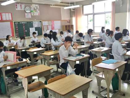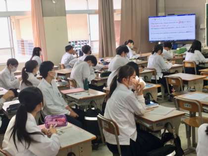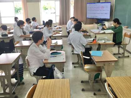9日(金)、2年生5組の1時間目は、英語の授業でした。