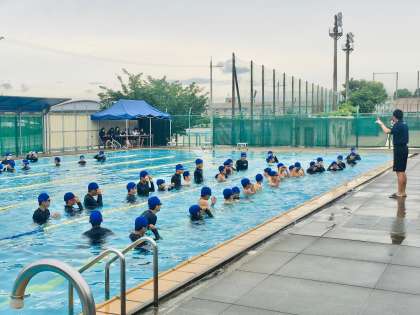 1年生:保健体育の授業〜早く泳ぎたい!〜 公開日 2023/06/12 更新日 2023/06/12 学校 1年生の保健体育の授業では、12日(月)より水泳の実技学習が始まりました。 生徒にとっては待ちに待ったプールでの学習で、入水中の生徒からは、「早く泳ぎたい!」という声が聞こえてきます。 ※写真は、4・5組の授業の様子です。