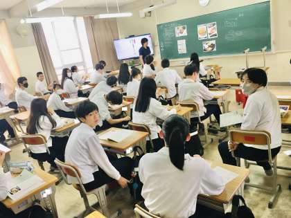 1組の授業では、生徒は、全盲の白鳥さんが考えた「対話を通して絵画を鑑賞するソーシャルビュー」という方法を通して、多様性によって生じる豊かさやおもしろさについて考え、相互に個性や立場を尊重し合いながらよりよく共生していくことの大切さについて考えました。
