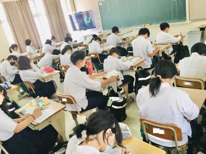 19日(月)、2年生6組の1時間間目は、国語の授業でした。