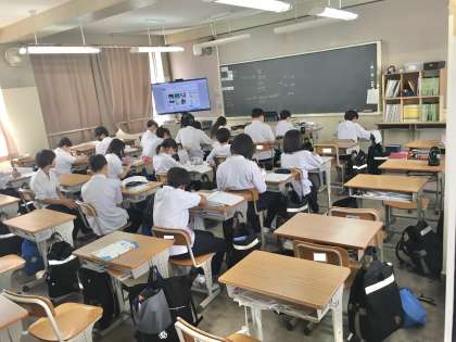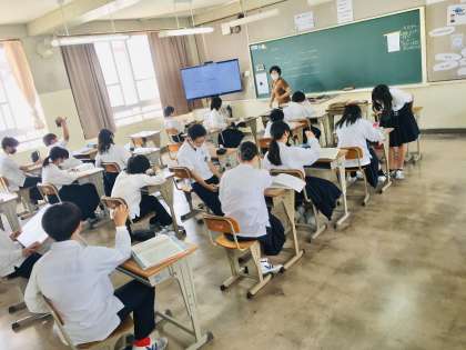 1年生2組の授業(英語)の様子 公開日 2023/06/20 更新日 2023/06/20 学校 20日(火)、1年生2組の1時間目は、英語の授業でした。 生徒は、2グループに分かれて学習をしていました。
