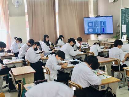20日(火)、2年生4組の1時間目は、理科の授業でした。
