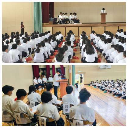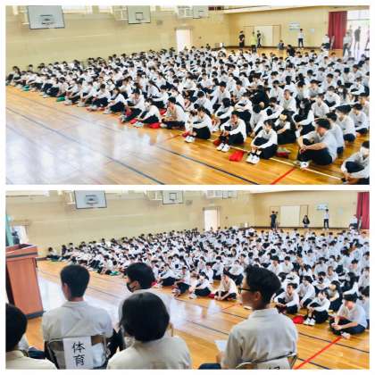 生徒総会2023を行いました! 公開日 2023/06/24 更新日 2023/06/24 学校 23日日(金)、6時間目に、令和5年度の生徒総会を行いました。 総会では、生徒会執行部や専門委員会の代表生徒から、今後の目標や活動計画が力強く発表されました。 フロアの生徒は、自身がどのように生徒会活動に協力できるのかを考えながら、発表を聞いている様子でした。