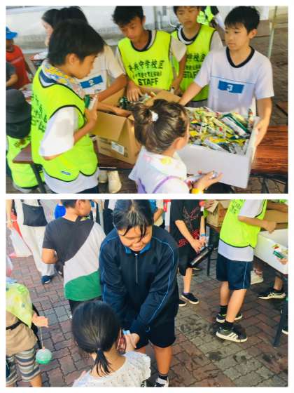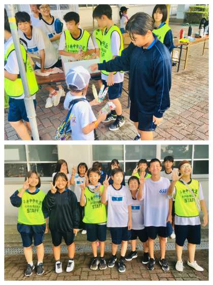 9日(土)午後に深阪小学校で行われた「子どもの集い」に本校から有志の中学校1年生(深阪小学校卒業生)が運営ボランティアとして参加しました。