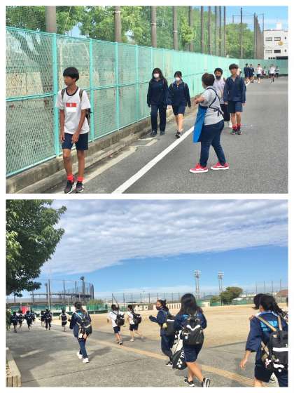 朝のあいさつ運動!〜PTA健全育成委員会〜 公開日 2023/09/12 更新日 2023/09/12 学校 昨日11日(月)から、PTA健全育成委員会の皆さんによる「朝のあいさつ運動」が行われています。 教職員とともに生徒の登校時の見守り活動をしていただいています。ありがとうございます。 ※写真は、12日(火)の登校時の様子です。