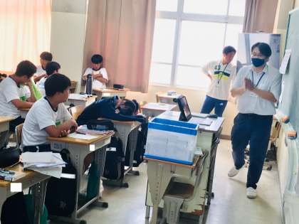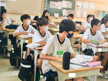 20日(火)、2年生1組の2時間目は、英語の授業でした。授業には、NSの先生が来てくれていました。