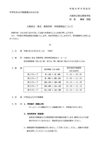 3年生:府立泉北 高校「学校説明会10月26日(土)」〜進路選択〜