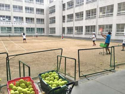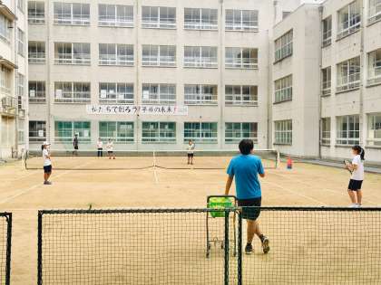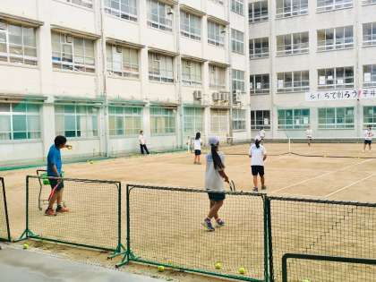 硬式テニス:土曜練習 公開日 2023/09/23 更新日 2023/09/23 学校 23日(土)午前中、職員室横の中庭では、硬式テニスボールを打つ音が響いていました。 気候も涼しく、練習により集中して取り組める環境になりつつあります。
