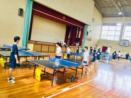卓球部:1・2年生練習 公開日 2023/09/23 更新日 2023/09/23 学校 23日(土)の卓球部の練習の様子です。 3年生は引退しましたが、1・2年生だけでサーブやレシーブの練習に取り組んでいます。