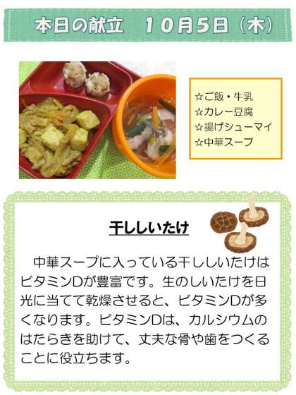 10月5日(木)中学校給食の献立です。