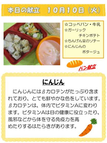 10月10日(火)中学校給食の献立です。
