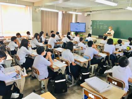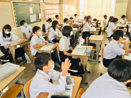 1年生は、社会の授業で、最澄と空海が活躍した時代について学習してます。授業では、彼ら2人が開いた宗派の特徴や意義について考えています。