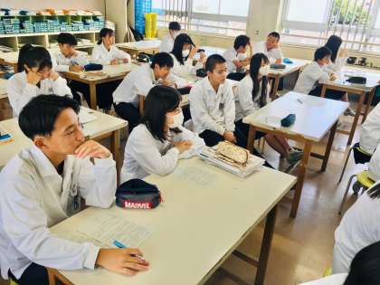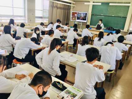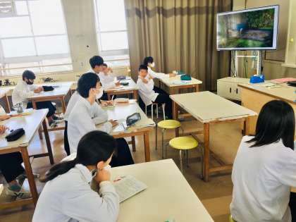 6日(金)、2年生3組の1時間目は、美術の授業でした。 鑑賞の学習が行われていました