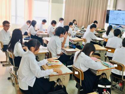 2年生では、平面図形分野の学習が始まっています。今後、対頂角、同位角、錯角、内角、外角の意味や性質について考えていく予定です。
