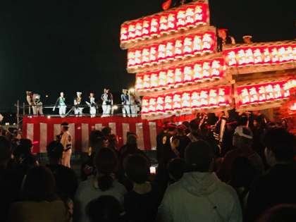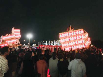 7日(土)久世地区だんじり曳行 公開日 2023/10/10 更新日 2023/10/10 学校 7日(土)は、秋例祭1日目でした。午後7時には久世地区全町の地車が原池公園内に集結し、祭礼がいっそう盛り上がりました。 本校生徒が地域の方とだんじりを威勢よく引っ張る場面や本校卒業生が地域行事の中心的な担い手として声を張り上げたりする場面を見ることができました。