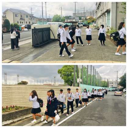 10日(火)登校の様子〜G7あいさつウィーク〜 公開日 2023/10/10 更新日 2023/10/10 学校 10日(火)の登校の様子です。 先週に引き続き、朝の挨拶は、G7貿易大臣会合の参加国の言語で行われています。 ※G7貿易大臣会合大阪・堺推進協力協議会HP→https://www.meti.go.jp/policy/g7osaka-sakai/index.html