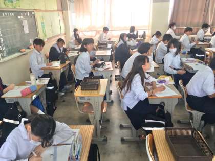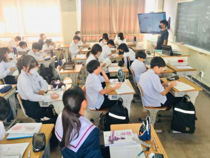 1年生:数学の授業〜反比例〜 公開日 2023/10/10 更新日 2023/10/10 学校 1年生の数学の授業では、比例の学習が終了し、反比例の学習が始まってます。 ※写真は、2組の授業の様子です。